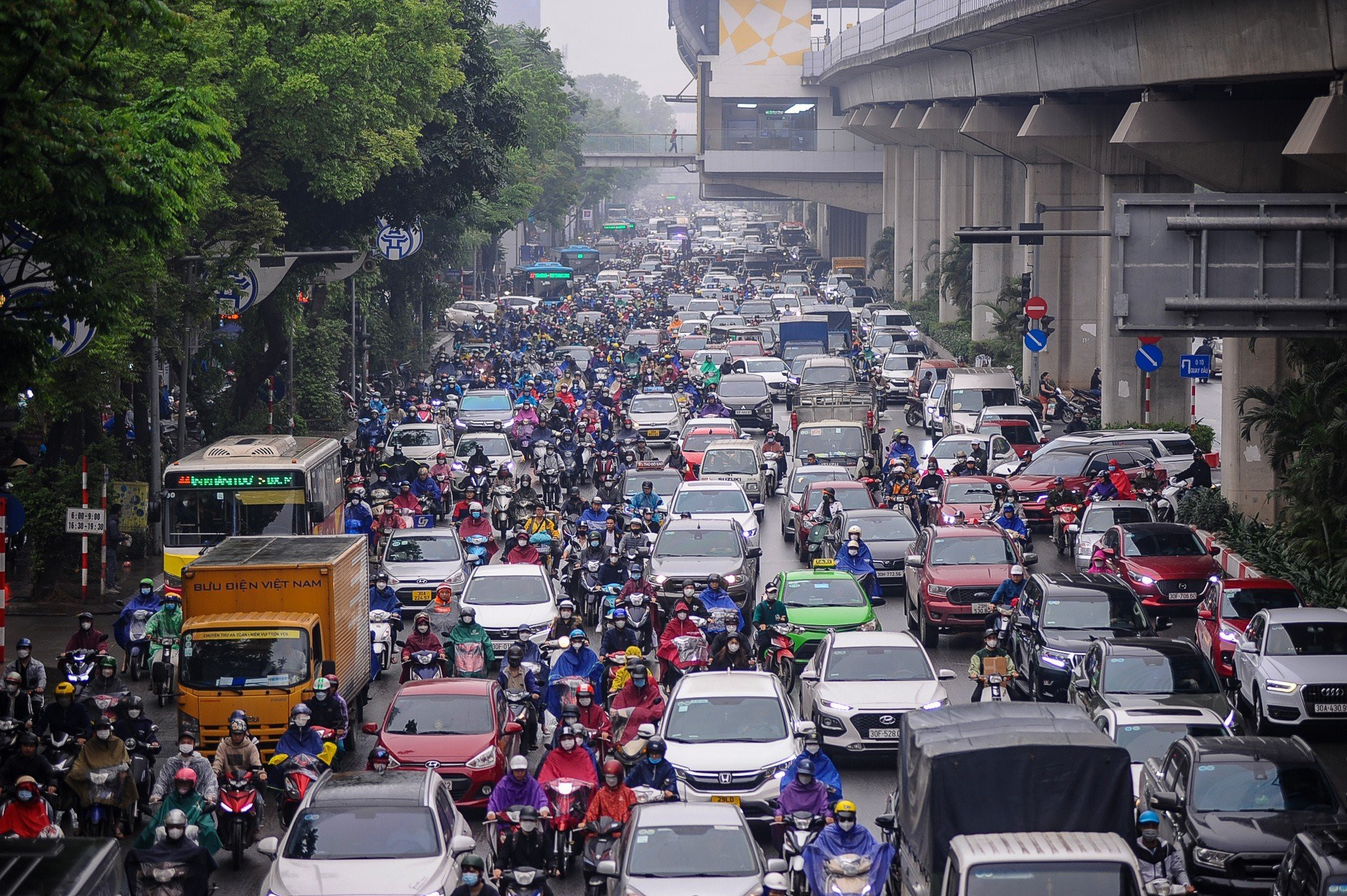 11/04/2023 17:29Các ngả đường Hà Nội rối loạn trong mưa