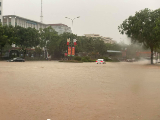 Mưa lớn khiến nhiều tuyến đường, phố của các phường Nam Cường, Bắc Cường, Kim Tân, Duyên Hải, Bắc Lệnh... ngập sâu trong nước: