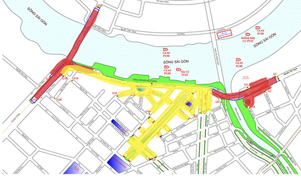 Cụ thể, để phục vụ chương trình bắn pháo hoa nghệ thuật, trình diễn thiết bị bay không người lái, biểu diễn nghệ thuật trên sà lan, cấm các phương tiện lưu thông ở các tuyến đường dưới đây vào khung giờ 18 - 22h các ngày 19,26/4.