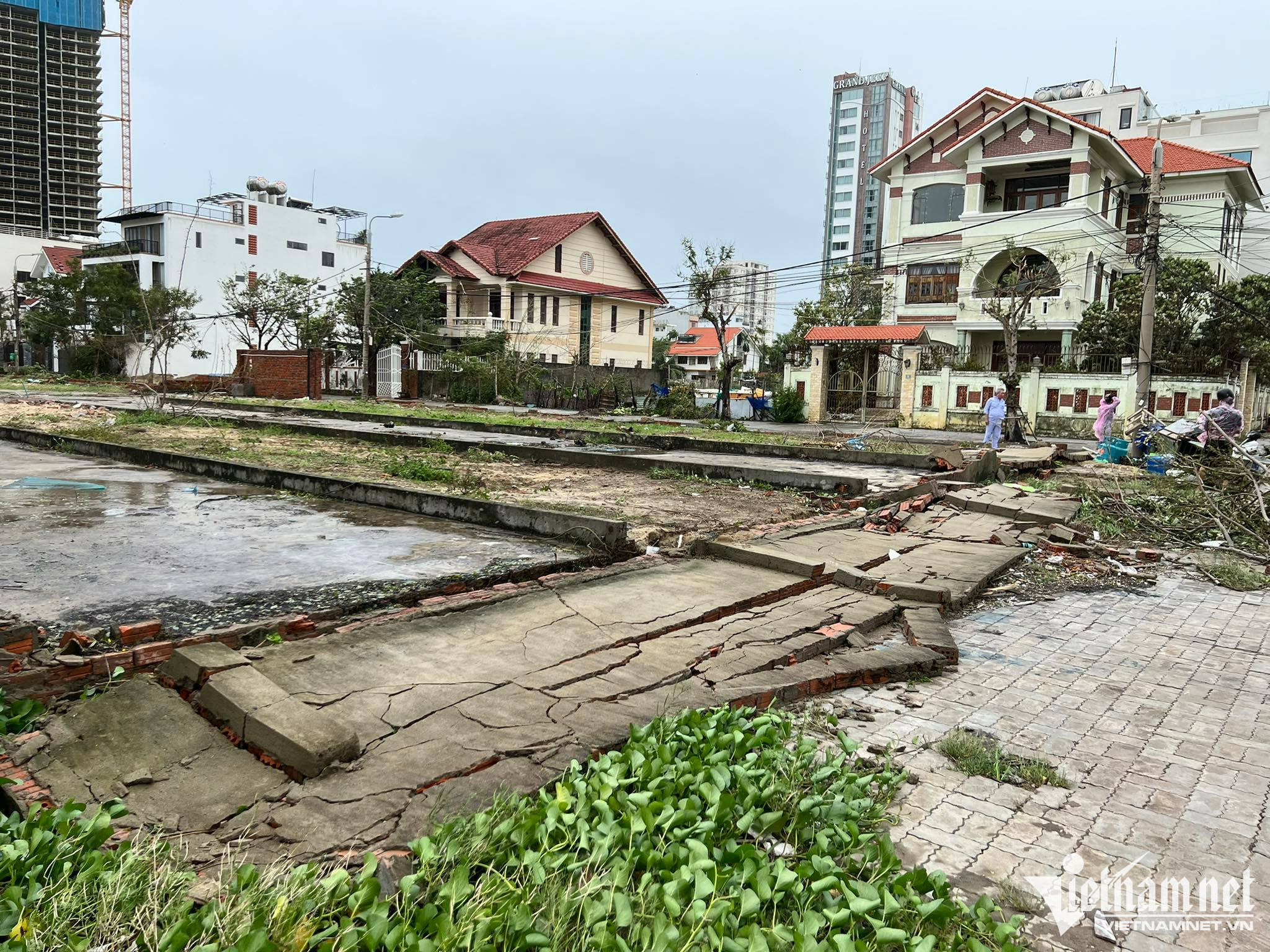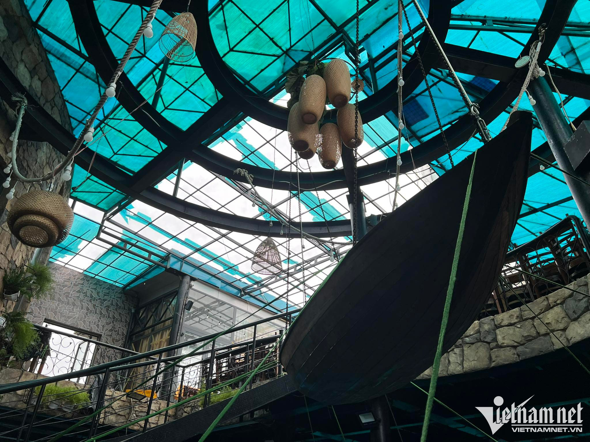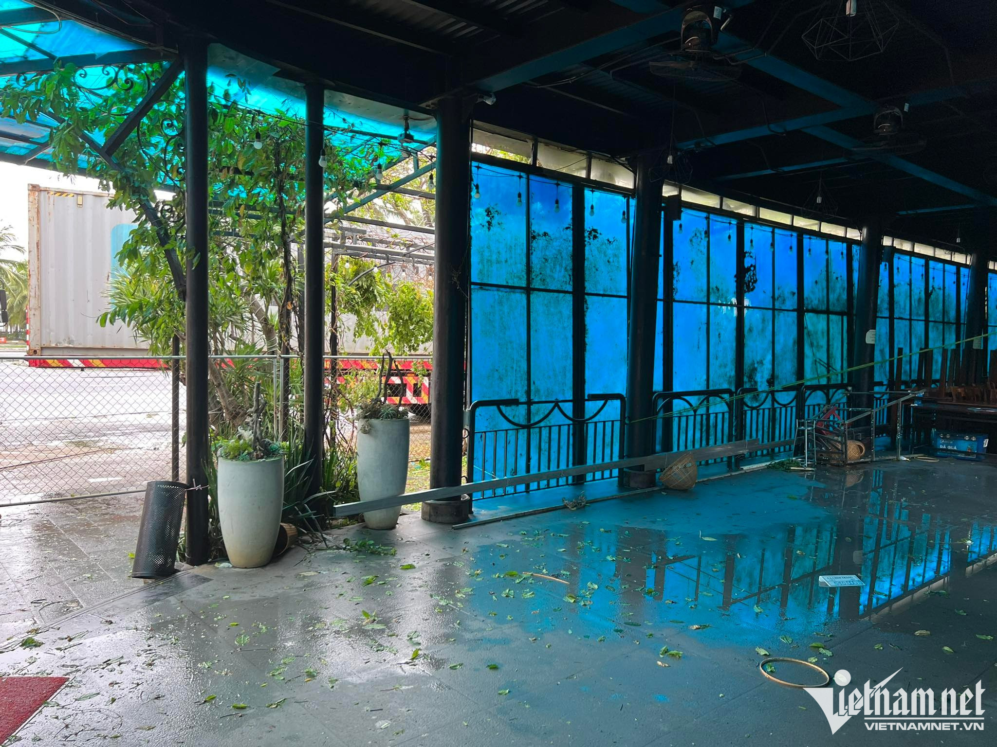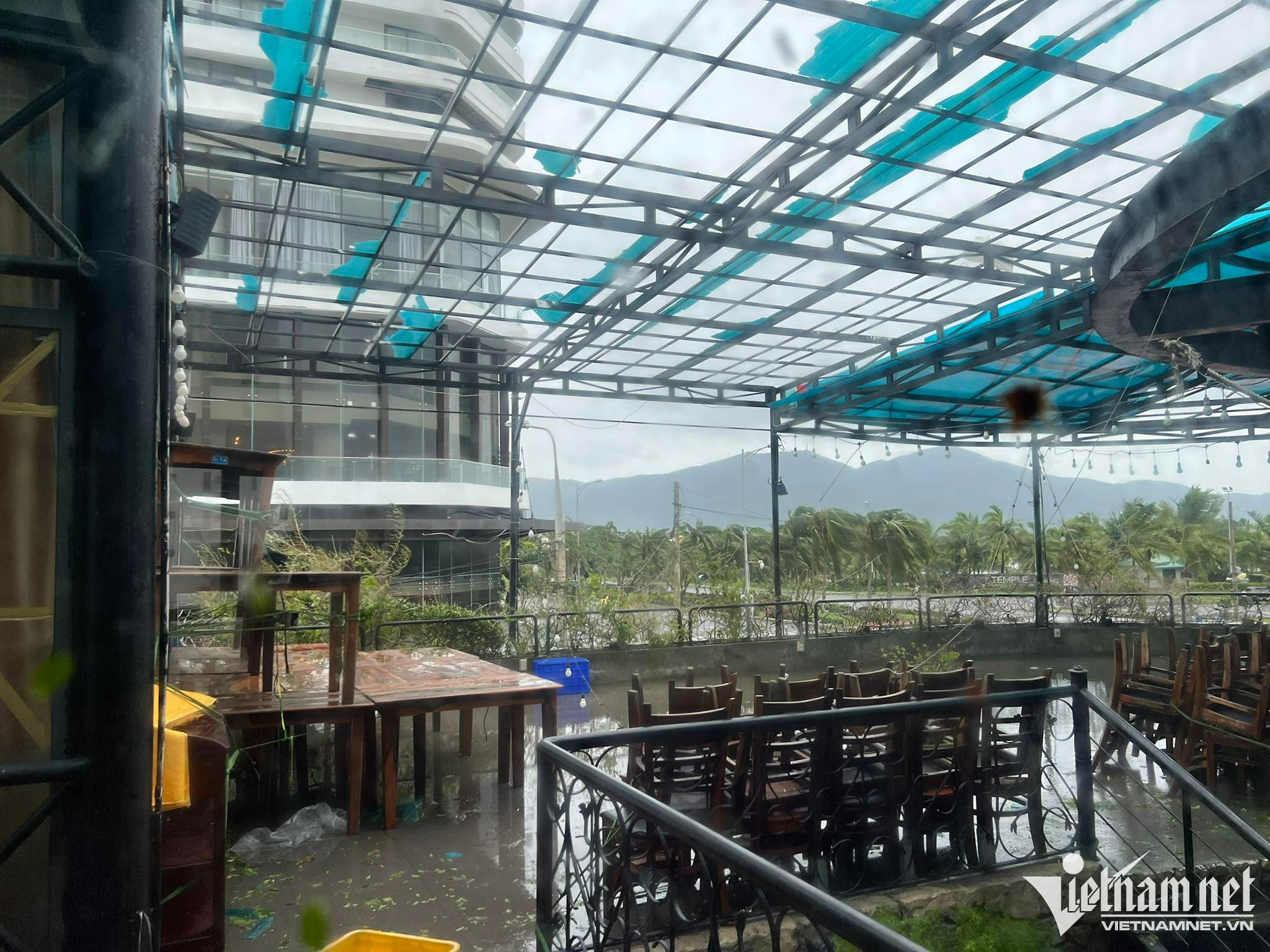 Chủ nhà hàng hải sản Ngọc Hương ở đường Võ Nguyên Giáp (Đà Nẵng) dù đã bỏ 20 triệu đồng thuê 3 chiếc xe container chắn gió nhưng sau bão, khung cảnh bên trong vẫn ngổn ngang, mái bị tốc.