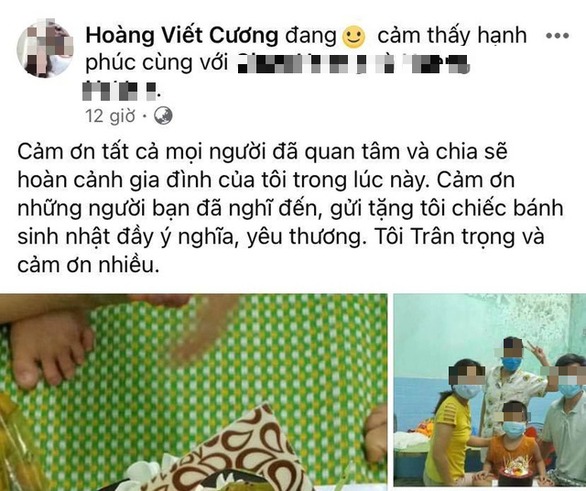 Như tin đã đưa, ngày 15/8/2020, ông Hoàng Viết Cương đang được cách ly phòng dịch Covid-19 tại Trung tâm Y tế TP Đông Hà, nhận được bánh sinh nhật từ người quen gửi vào.