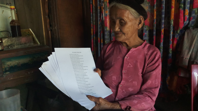 Dù ở tuổi "xưa nay hiếm" nhưng cụ Mơ vẫn linh hoạt, sức khỏe dẻo dai và trò chuyện rất cởi mở, vui vẻ. Cụ Mơ còn hay đọc thơ răn dạy con cháu.
