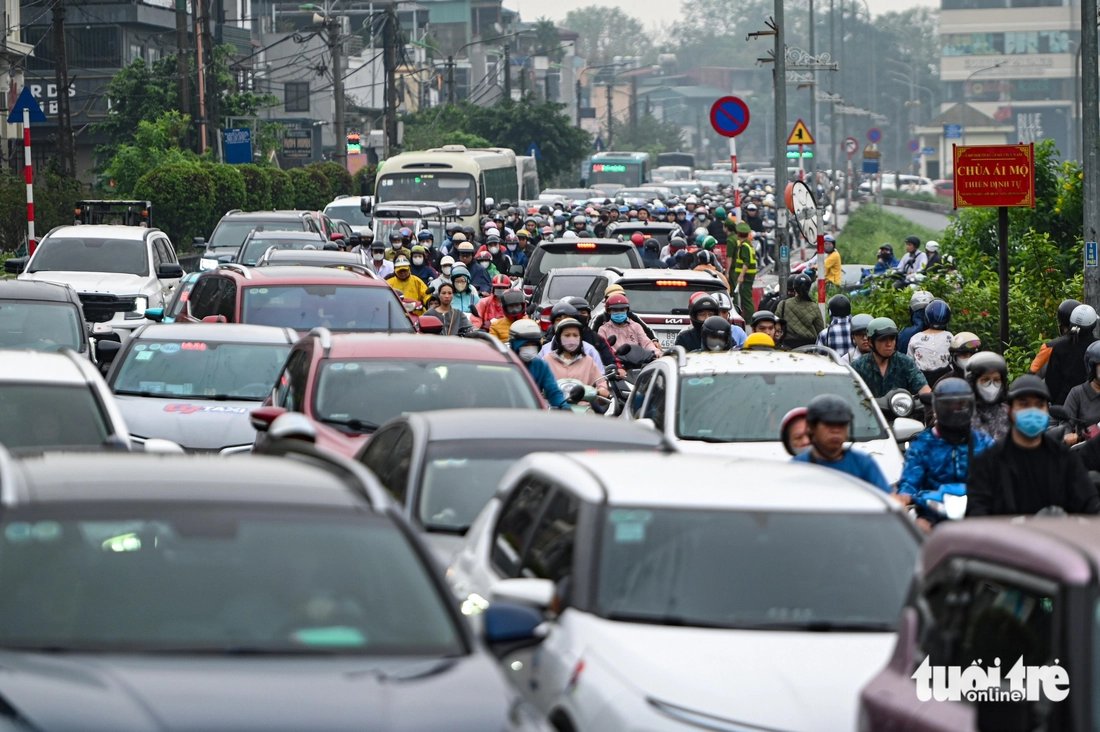 Thời tiết mưa vào sáng sớm càng khiến việc lưu thông thêm phần vất vả. Dù lực lượng chức năng đã bố trí hơn 10 cán bộ cảnh sát giao thông và công an tại các nút giao trọng điểm để điều tiết, áp lực phương tiện quá lớn vẫn khiến việc phân luồng gặp nhiều trở ngại.
