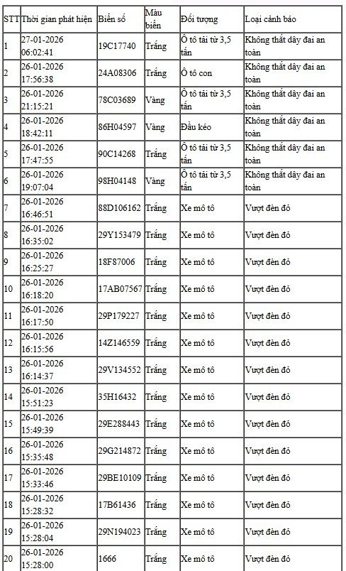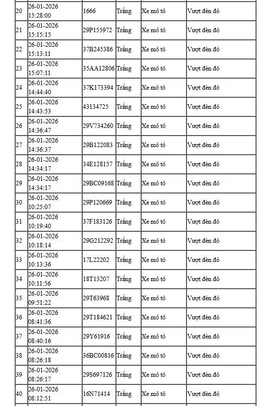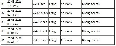 28/01/2026 13:49Camera AI hoạt động 24/24: Danh sách những trường hợp "dính" phạt nguội ở Hà Nội phải nộp phạt gấp