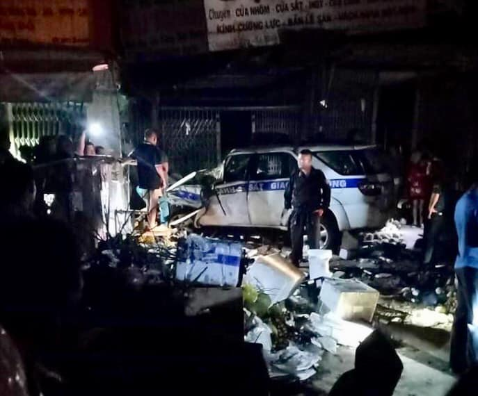 Trước đó, khoảng 18h30 cùng ngày, chiếc xe ô tô 5 chỗ biển số xanh 61A-004.22 bên ngoài có gắn phù hiệu của CSGT do một người đàn ông khoảng 35-40 tuổi, mặc thường phục điều khiển đi ngang khu vực chợ Minh Hòa thì gây tai nạn với một xe khác làm một người bị thương nặng.