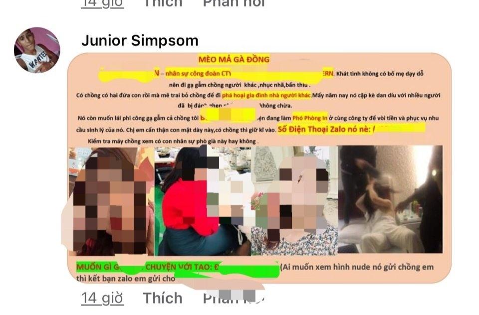 Tiếp đó, chị T thấy hình ảnh của mình bị cắt ghép với hình ảnh của công nhân vay tiền đăng lên mạng xã hội, dựng chuyện chị T gạ gẫm cướp chồng người khác.