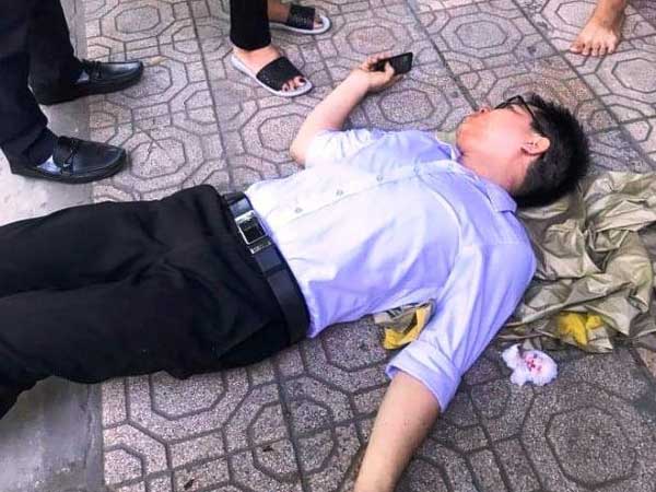 Tiếp đó, một trong số 2 thanh niên này hỏi: "Mày có phải là P. không?", rồi vung tay đánh tới tấp vào vùng mặt khiến ông P. choáng váng, bất tỉnh ngay trên đường. Sau đó, 2 kẻ lạ mặt lên xe bỏ chạy.