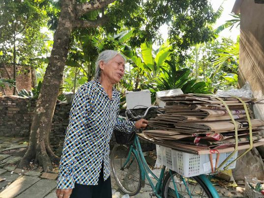 Hàng ngày, bà rong ruổi trên chiếc xe đạp cũ kỹ nhặt phế liệu bán lấy tiền, đem cả số tiền Nhà nước hỗ trợ hoàn cảnh neo đơn để tham gia hội hụi do bà Hường đứng chủ.