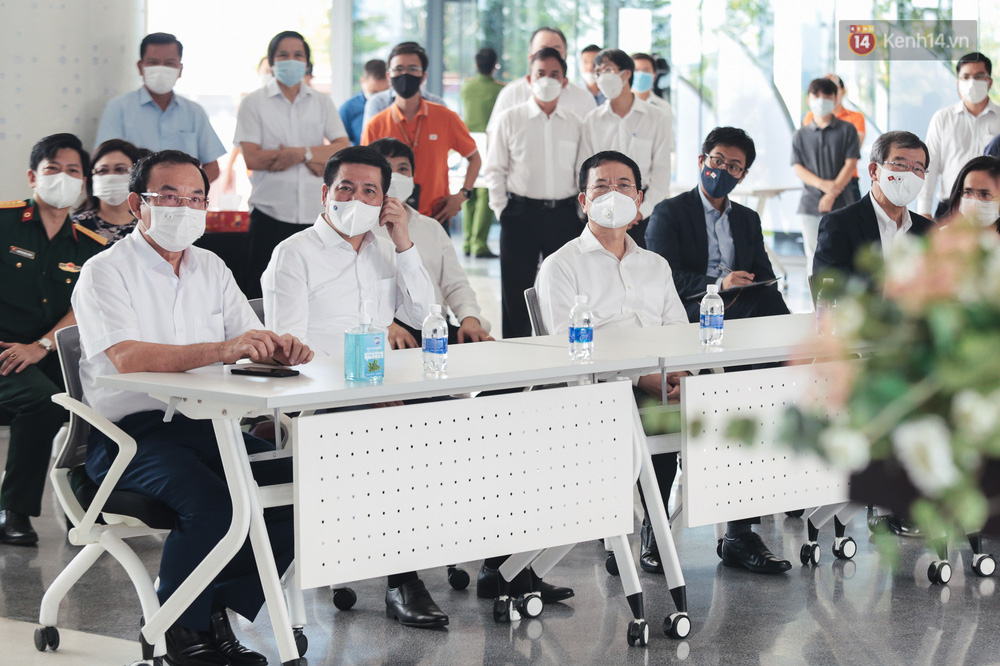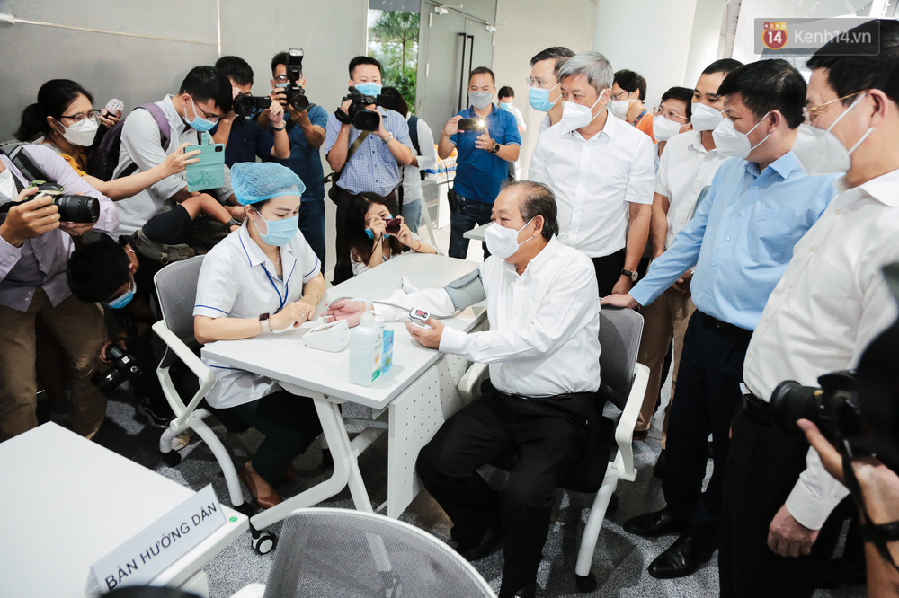 Tham dự buổi tiêm trong sáng nay có Phó Thủ tướng Chính phủ Trương Hoà Bình, Bí thư Thành uỷ TP.HCM Nguyễn Văn Nên, Bộ trưởng Bộ Y tế Nguyễn Thanh Long, Bộ trưởng Bộ Thông tin và Truyền thông Nguyễn Mạnh Hùng cùng lãnh đạo các đơn vị.