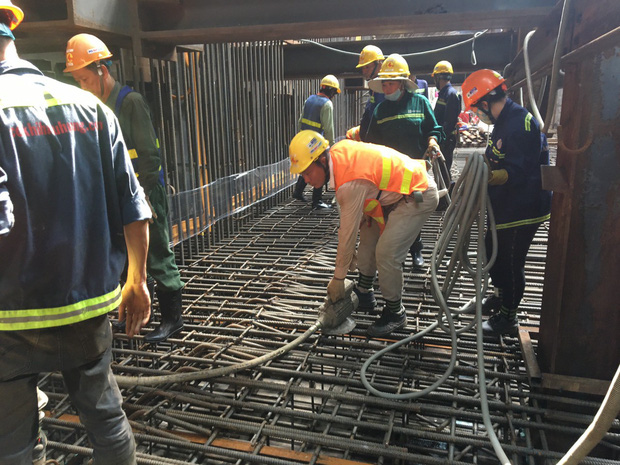 Hiện tại có khoảng 800 người, trong đó 650 người ca ngày và 150 người ca đêm đang thi công liên tục xuyên ngày đêm tại nhà ga Bến Thành để kịp hoàn thành công tác xây dựng toàn bộ gói thầu CP1a vào cuối năm 2021.