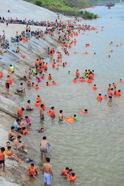 "Mọi năm chỉ lác đác một hai người ra sông tắm nhưng bắt đầu từ hè năm nay thì việc này đã trở thành một trào lưu lan rộng khắp thành phố, cao điểm nhất là trong 2 tuần gần đây. Không chỉ có người trong thành phố mà thậm chí nhiều người ở các khu vực ngoại thành và các tỉnh lân cận cũng lũ lượt đi xe máy, ô tô về sông Đà tắm mát" - Anh Vũ Văn Ninh (một người dân khác) khẳng định.
