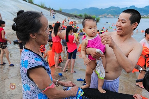 Người dân ở đây cho biết, năm nay là năm đầu tiên mọi người rủ nhau đi tắm sông Đà đông đến vậy. "Tắm sông Đà là cơn sốt mới rộ lên khoảng 2 tuần nay chứ trước kia ít người tắm lắm" - anh Lê văn Đạt (một người dân phường Phương Lâm) chia sẻ.
