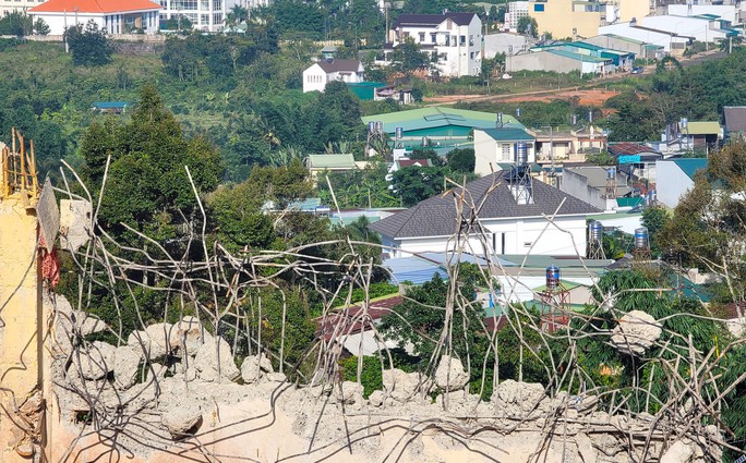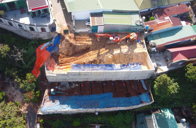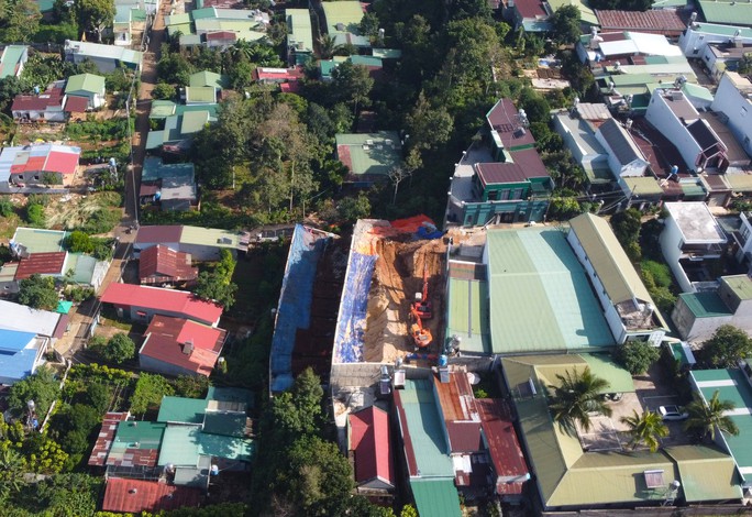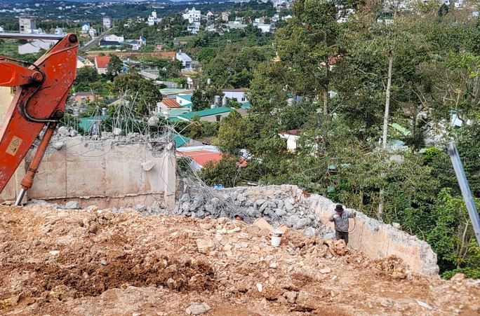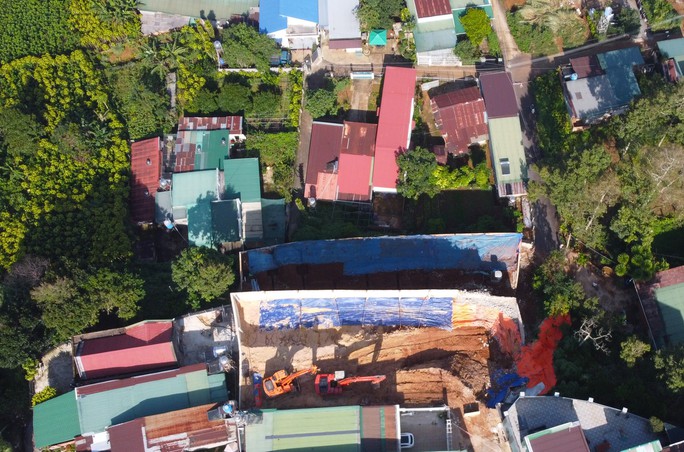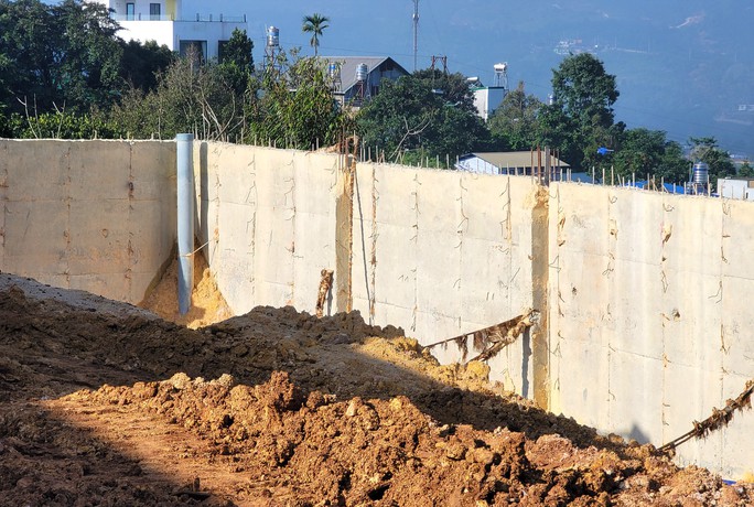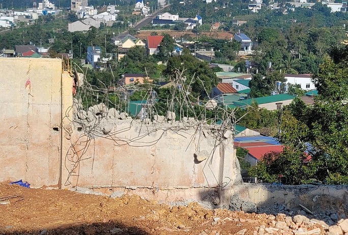 Công trình taluy cuối hẻm 377 Trần Phú ở TP Bảo Lộc (Lâm Đồng) cao hàng chục mét bị phát hiện xây dựng không phép, có dấu hiệu hư hỏng tiềm ẩn nguy cơ cho nhiều hộ dân sống bên dưới.