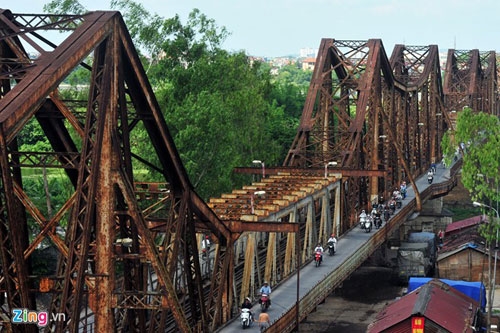 Cầu Long Biên, biểu tượng của thủ đô và đồng thời cũng là tuyến giao thông huyết mạch vắt qua sông Hồng, nối hai quận Long Biên và Hoàn Kiếm. |