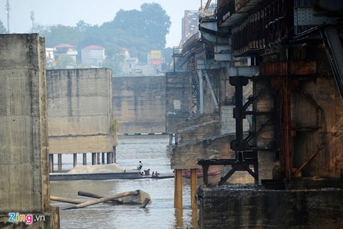 Hiểm nguy tiềm tàng không chỉ có nguy cơ xảy ra với những người lưu thông trên mặt cầu mà còn với những thuyền bè trôi dưới lòng sông Hồng. |