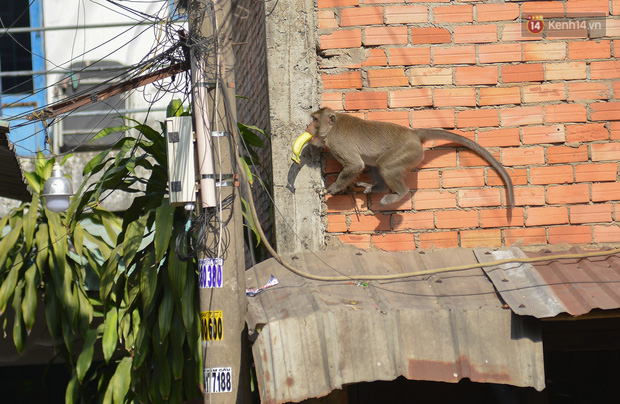 Còn bà Nguyễn Thị Cúc (50 tuổi, đường TX13, khu phố 6) cho biết, buổi sáng, khoảng 5h30 đàn khỉ bắt đầu ngày mới bằng việc đi khảo sát xem có gì ăn không. Chúng nhảy từ cây này sang cây kia, rồi phóng qua mái tôn dãy nhà trọ để tìm thức ăn. Nếu trong nhà không có ai chúng sẽ "đột nhập" vào nhà trộm hoa quả.