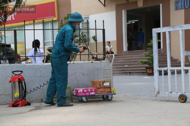 Do lượng cư dân trong khu chung cư khá đông nên một siêu thị trong khu chung cư này đang tích cực hoạt động, vận chuyển hàng hóa, lương thực vào trong để bày bán, cung cấp cho người dân.