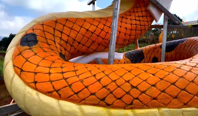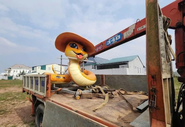 Theo đó, linh vật rắn này do anh Đinh Văn Tâm, người chế tác ra các linh vật mèo và rồng đặt ở huyện Triệu Phong và Hướng Hóa của tỉnh Quảng Trị vào dịp Tết Nguyên đán 2023 và 2024.