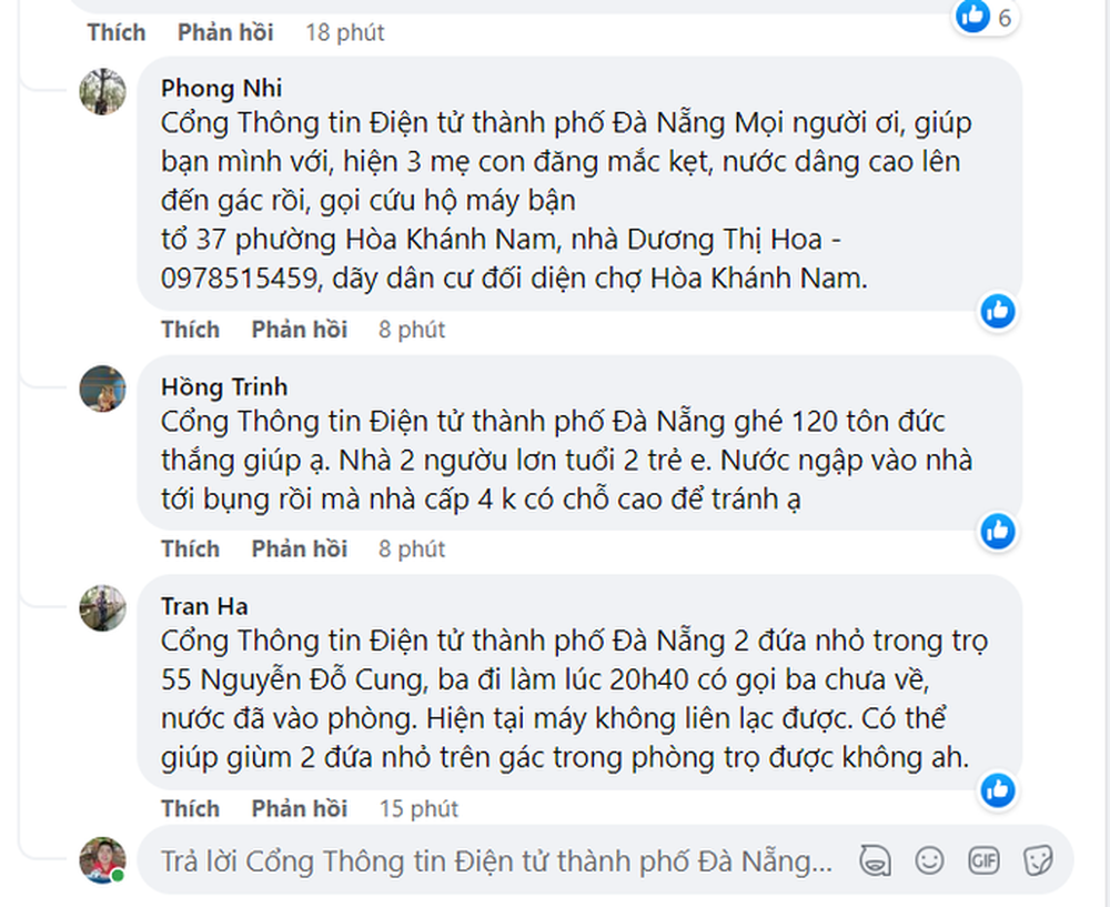 Đối với trường hợp kêu cứu vì nước lên nhanh, cô lập trẻ em và người già tại ngôi nhà trong kiệt 342 Hoàng Văn Thái (quận Liên Chiểu), ông Nguyễn Đăng Huy - Chủ tịch UBND quận Liên Chiểu cho biết các lực lượng cứu hộ đang nỗ lực tiếp cận ngôi nhà giải cứu người mắc kẹt do khắp nơi đều bị chia cắt vì ngập.