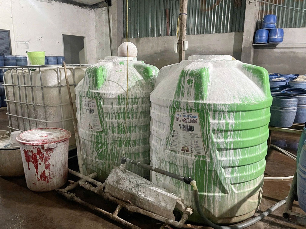 Cơ quan chức năng cũng thu giữ một số dung dịch đã pha chế, để phục vụ việc sản xuất giá đỗ cùng các tang vật khác.