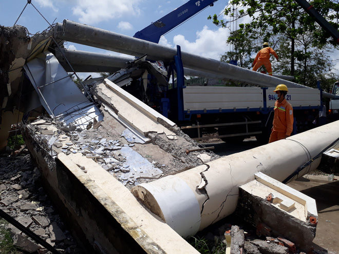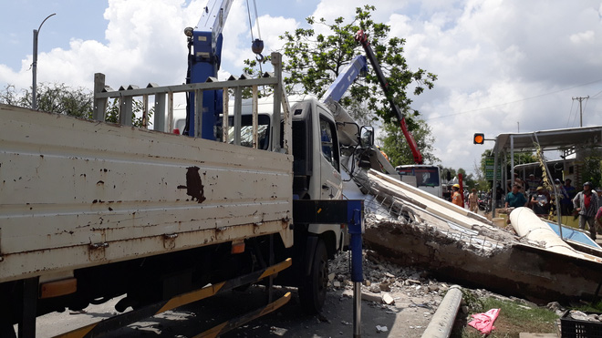 Song, lưu thông đến đoạn thuộc địa bàn ấp 3 thì cần cẩu xe tải không may bị va vào và làm sập thanh ngang cổng chào. Thanh ngang cổng rơi xuống đã đè bẹp ca-bin ô tô tải khiến tài xế và phụ xe mắc kẹt bên trong.