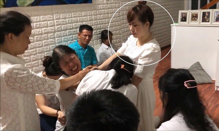Theo lời bà C., khi chữa bệnh, Thương là người cầm sổ ghi chép lời của Chúa cha, những người còn lại vây quanh đánh người bệnh. Thương yêu cầu quỷ phải ra khỏi người bệnh, “nhập” vào 1 người nào đó là thành viên của nhóm rồi tự nói ra là quỷ gì. Hành động của những người này rất kỳ dị, khi thì la hét, khi nhảy múa và cả lăn lộn...