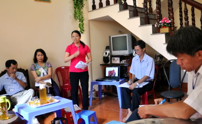 | Bà Bùi Thị Na (đứng) trình bày ý kiến của mình rằng không đồng ý di dời, ban giao mặt bằng với đại diện chính quyền, tổ dân phố, các ban, ngành của TP Vũng Tàu vào chiều 7-6 - Ảnh: Đông Hà |