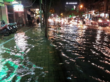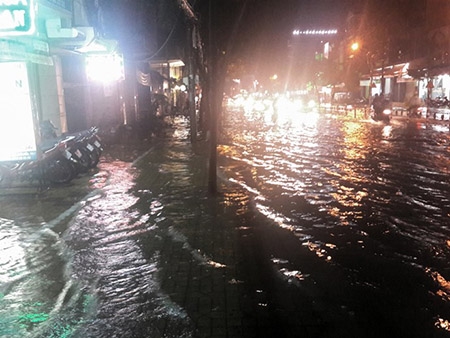 | Đường Trần Hưng Đạo cũng chìm trong nước |