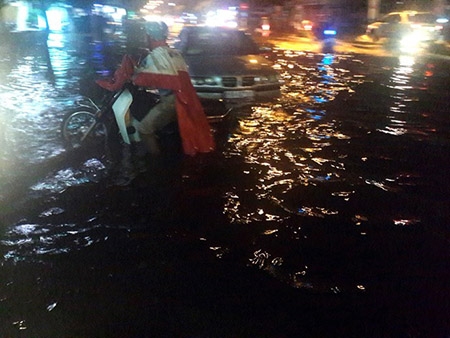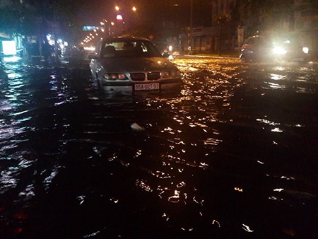 | Đường Trần Văn Hoài ngập sâu sau cơn mưa chiều 18.10 |