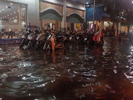 Chiều 18.10, cơn mưa lớn trong khoảng 2 giờ (từ 17 giờ đến 19 giờ) đã khiến nhiều tuyến đường ở các quận trung tâm TP.Cần Thơ ngập lênh láng, nước tràn vào nhà dân.