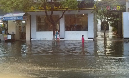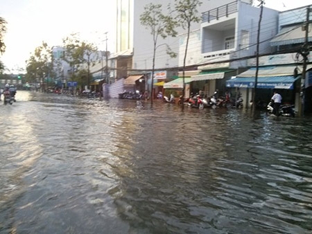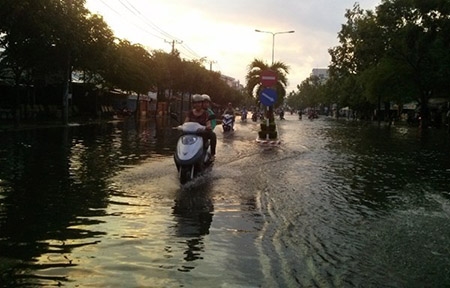 Cả con đường Trần Văn Hoài chìm trong nước |