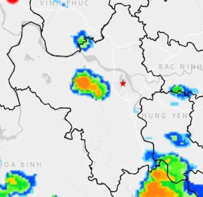 Cơ quan khí tượng cảnh báo trong khoảng 30 phút tới 3 giờ tới có khả năng mưa lớn cục bộ, giông lốc tại khu vực Thạch Thất, Phúc Thọ, Quốc Oai, Hoài Đức và sẽ tiếp tục mở rộng sang các quận trung tâm Hà Nội.