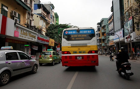 Trên phố Huế, các phương tiện công cộng như xe buýt, xe taxi lấn làn xe máy |