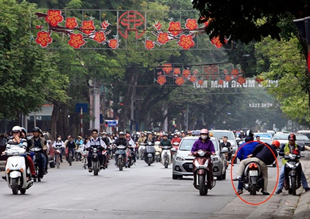 Xe máy đi ngược chiều trên phố Bà Triệu |