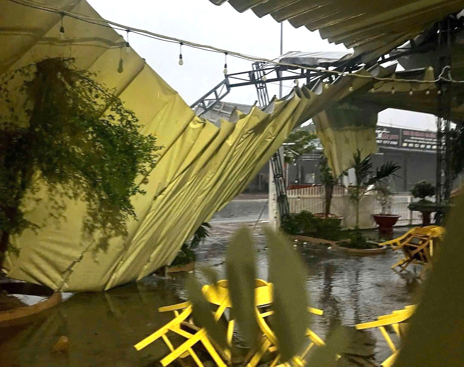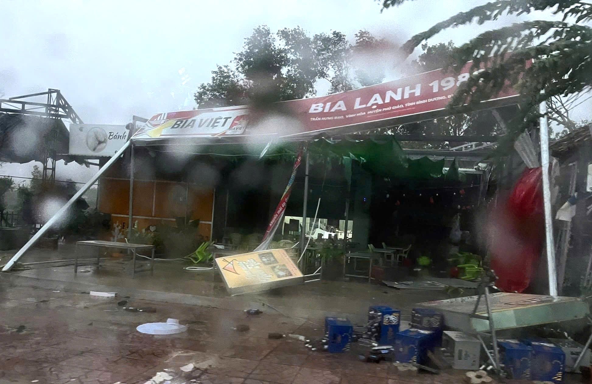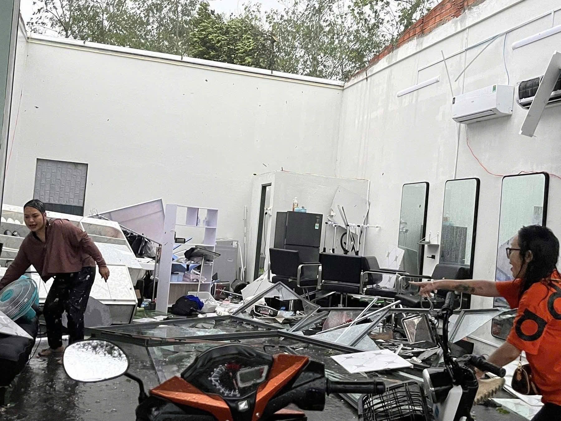 Tại khu vực huyện Phú Giáo, nhiều công trình nhà dân, cơ sở kinh doanh đổ sập và có cả mưa đá .