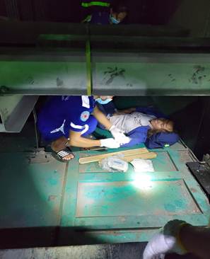 Lực lượng cứu nạn cứu hộ đã nhanh chóng tiếp cận và tiến hành các biện pháp sơ cấp cứu ban đầu, cố định cánh tay phải bị gãy của nạn nhân để tránh gây tổn thương cho nạn nhân trong quá trình đưa nạn nhân ra khỏi hố kỹ thuật thang máy.
