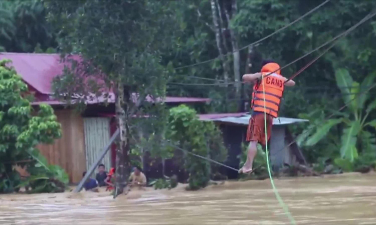 19/09/2020 19:09Cảnh sát đu dây giải cứu 6 người mắc kẹt trong nước lũ