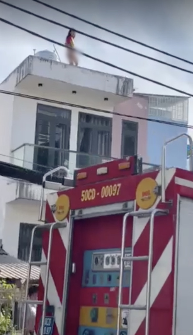 Khoảng 9h ngày 13/12, nhiều người di chuyển trên đường Phan Văn Trị, phường 12, quận Bình Thạnh, TP.HCM không khỏi rùng mình chứng kiến cảnh tượng một cô gái đứng trên nóc căn nhà 2 tầng 'dọa' rơi xuống đất.