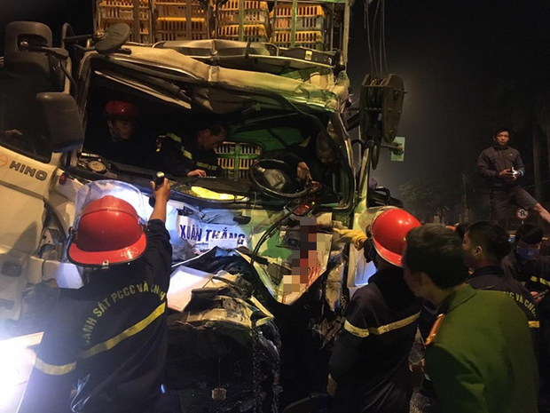 Cú va chạm mạnh khiến phần đầu xe tải này biến dạng bẹp dúm, tài xế bị kẹt cứng trong cabin, gục xuống vô lăng. Nhận được tin báo, Phòng Cảnh sát Phòng cháy chữa cháy và Cứu nạn cứu hộ (PCCC&CNCH), Công an tỉnh Nghệ An đã chỉ đạo Đội CC&CNCH số 4 và số 9, điều 1 xe chuyên dụng, 1 xe chữa cháy cùng 16 cán bộ đến hiện trường.