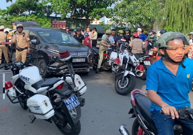 Khi xe này đi đến đường Bàu Bàng (phường Chánh Nghĩa, thành phố Thủ Dầu Một) thì xảy ra va chạm với xe máy do một phụ nữ điều khiển. Cú tông mạnh khiến người phụ nữ nằm bất động trên đường, sau đó được người dân đưa đi cấp cứu.