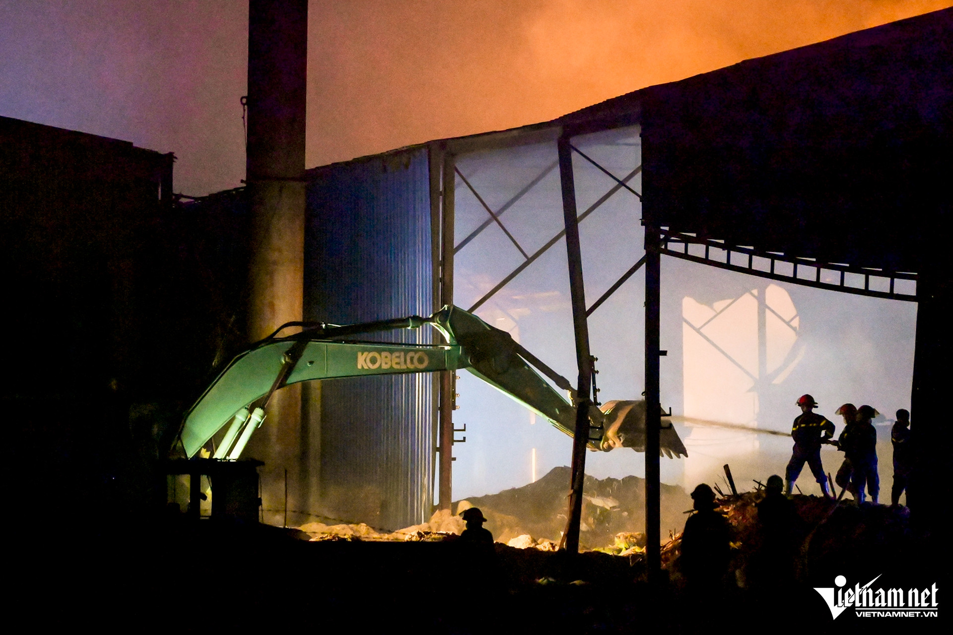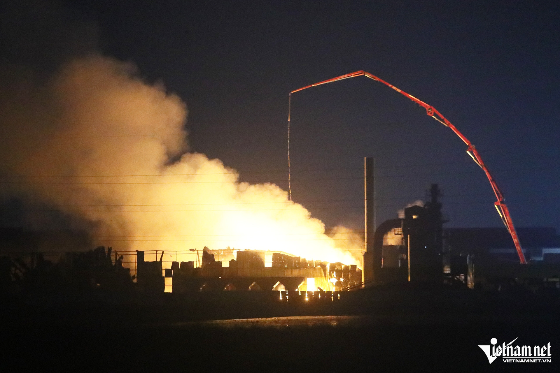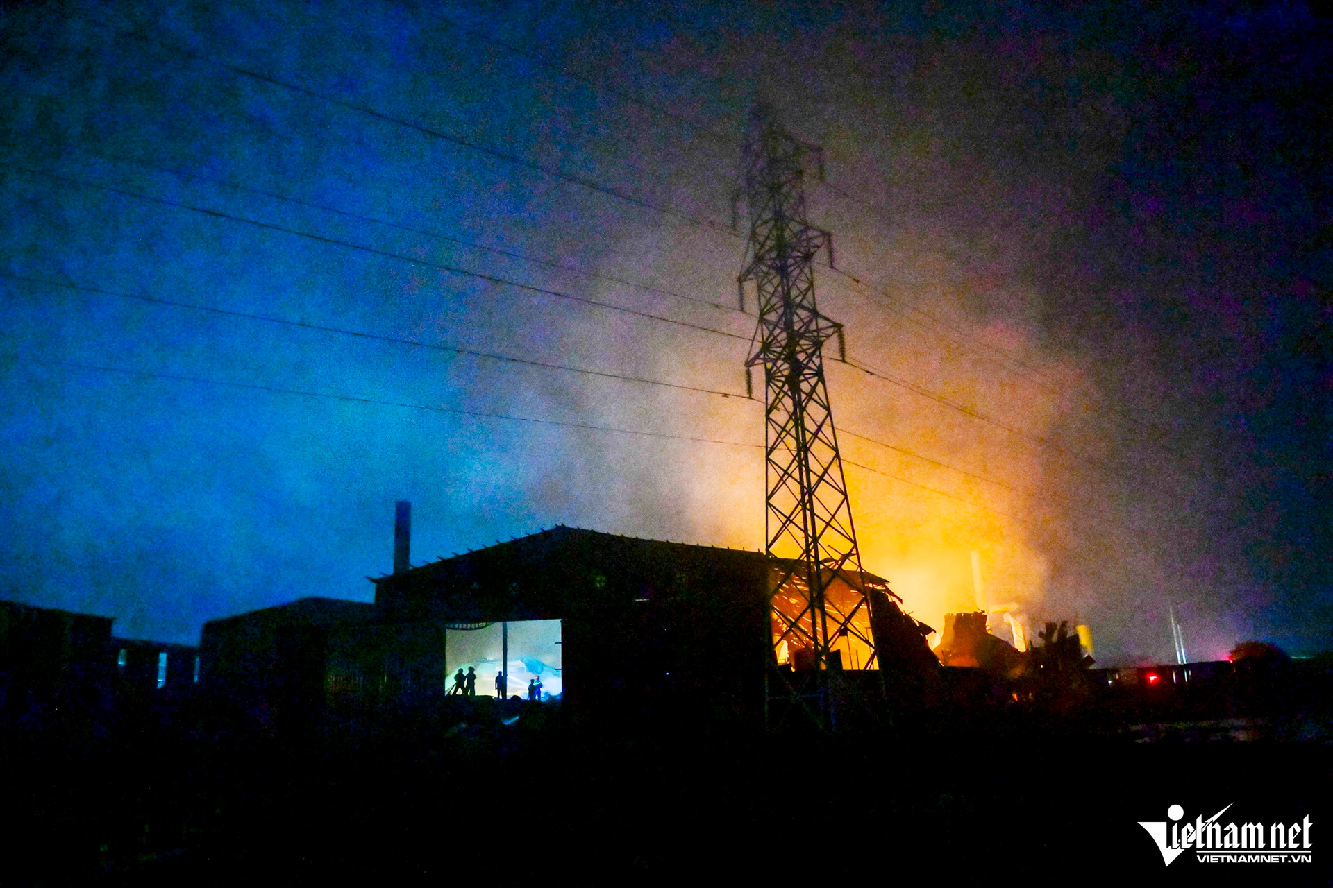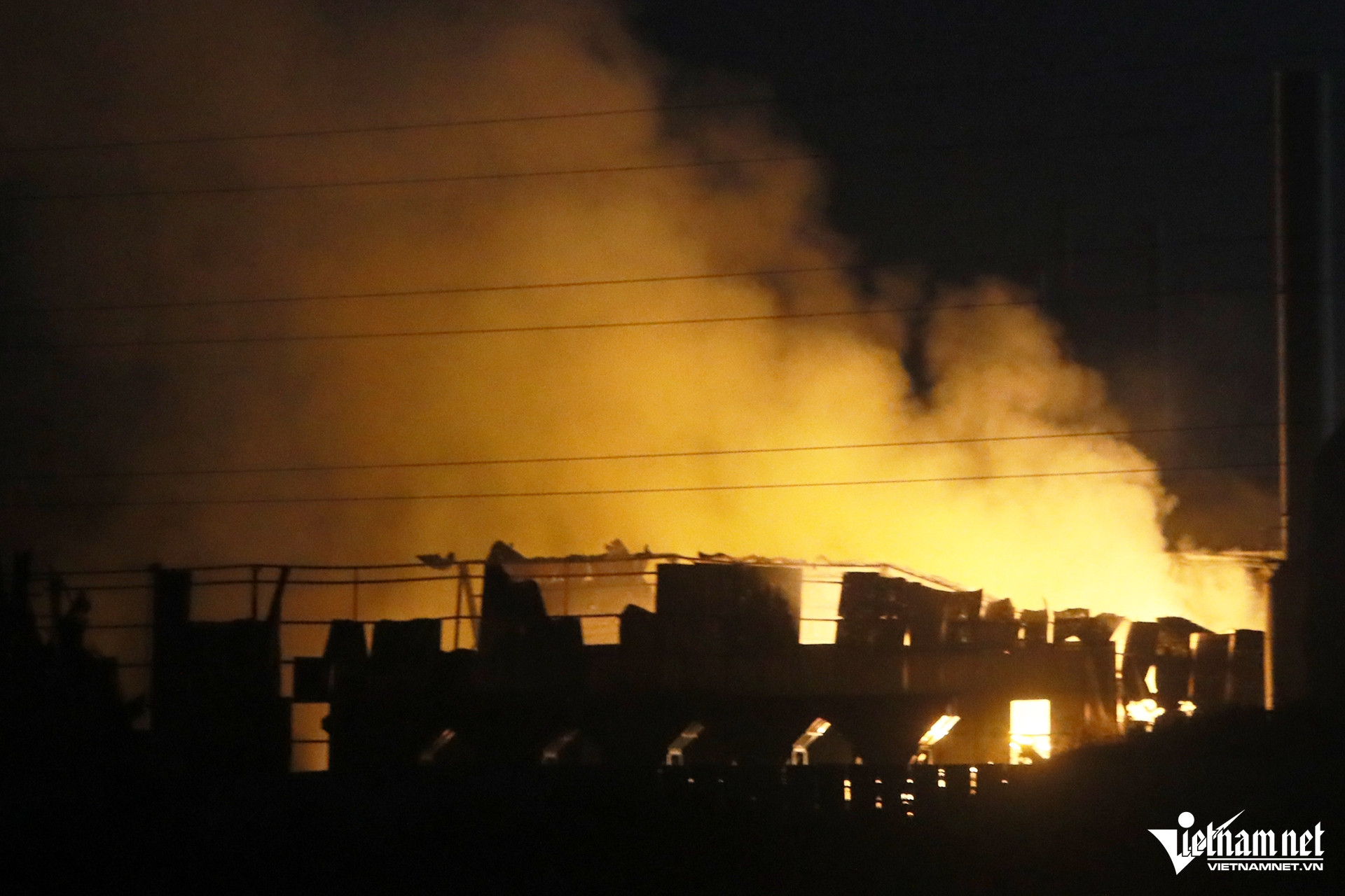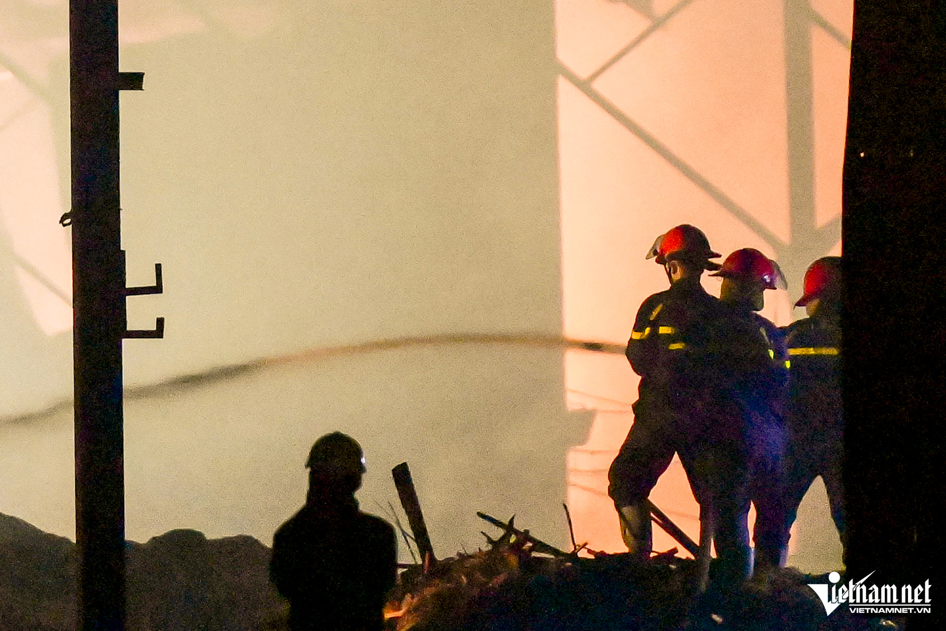 Thời điểm 0h ngày 29/6, tức hơn 10 tiếng sau khi đám cháy tại xưởng tái chế phế liệu, ở xã Minh Hải (huyện Văn Lâm, Hưng Yên) bùng phát, tại hiện trường, ngọn lửa vẫn cháy đỏ rực. Bên trong nhà xưởng, hàng chục cán bộ, chiến sĩ Cảnh sát PCCC&CNCH cùng quân đội vẫn tích cực "chiến đấu" với giặc lửa.