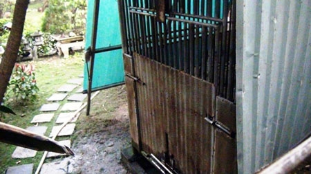 Chuồng nuôi con gấu 100 kg cắn đứt cánh tay bé Dũng. |