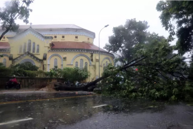 | Cảnh tượng bão số 5 gây gió bão khủng khiếp ở Huế (nguồn Video: Văn Đức/Facebook) |