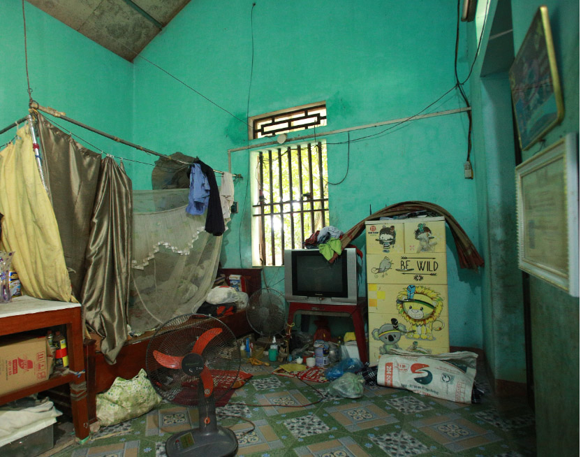 Khoảng 6-7 năm về trước, gia đình ông Học được chính quyền địa phương và bà con trong thôn hỗ trợ xây dựng một căn nhà cấp 4. Bên trong căn nhà tuềnh toàng, gần như không có đồ vật gì giá trị, đồ đạc ngổn ngang, dường như đã thiếu đi sự sắp xếp từ lâu.
