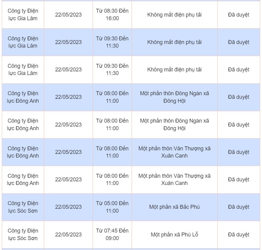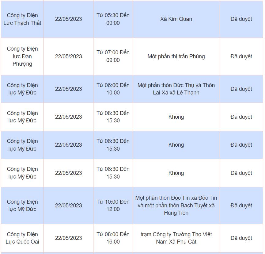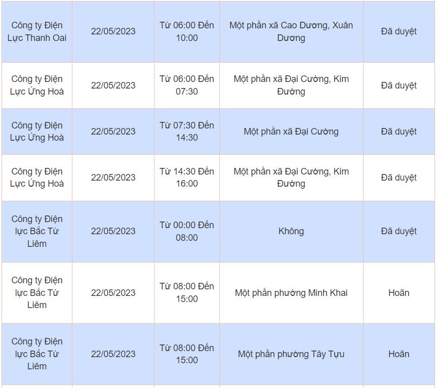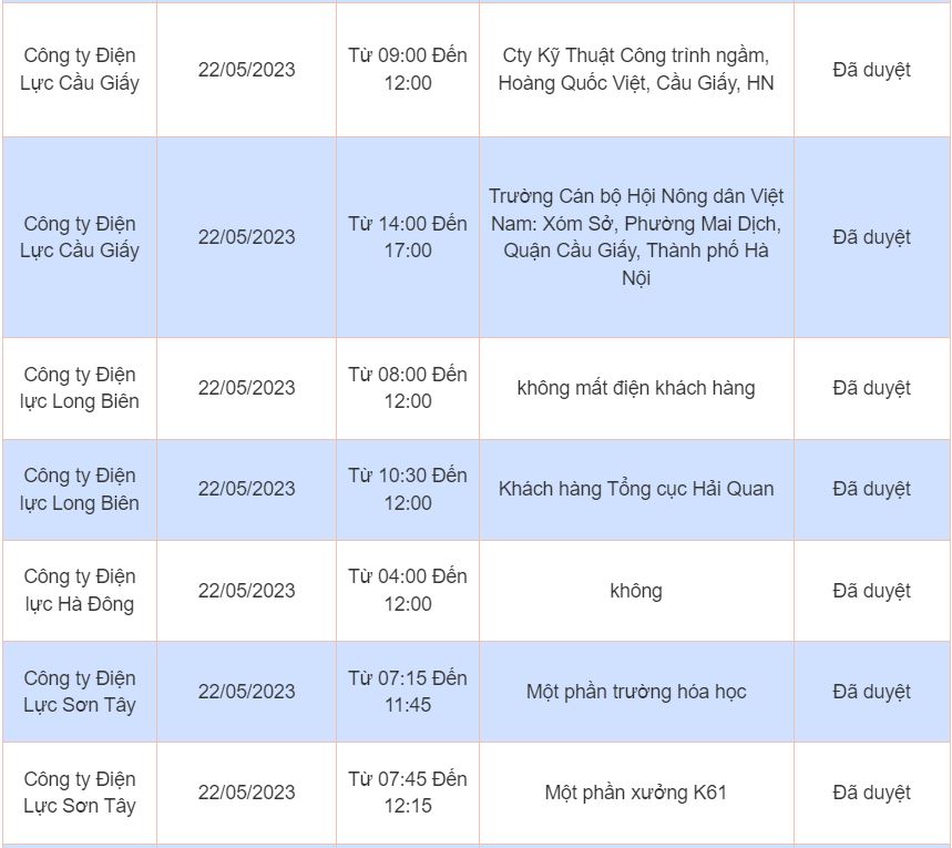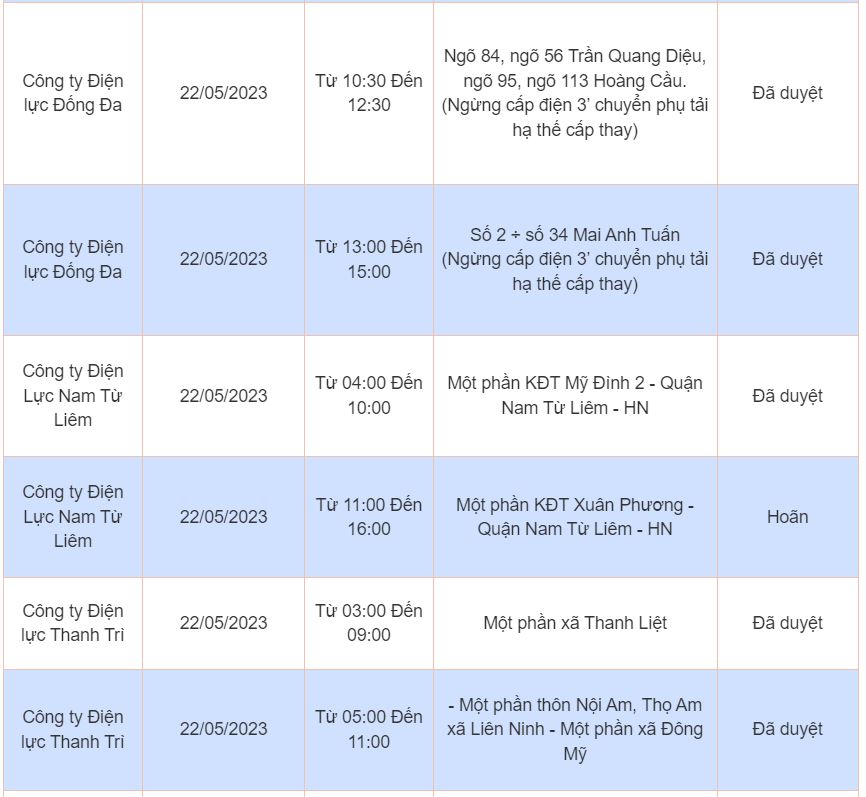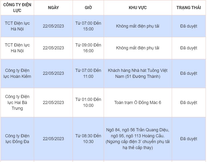 Lịch cúp điện, cắt điện các khu vực tại Hà Nội ngày 22/05/2023 được cập nhật từ cổng thông tin Điện lực TP. Hà Nội.