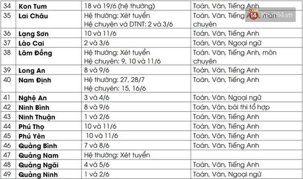28/05/2021 14:17Cập nhật lịch thi, môn thi vào lớp 10 của 63 tỉnh, thành