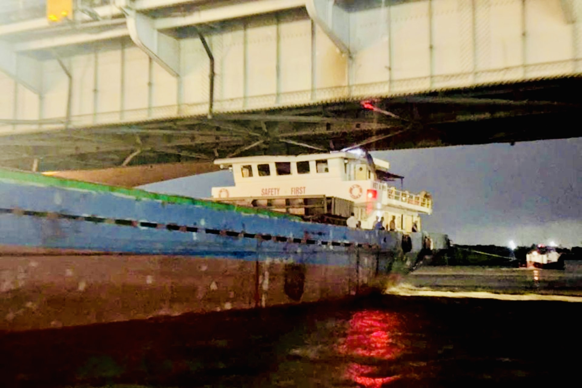 Theo thông tin ban đầu, tối 13/10, tàu hàng Việt Á 999 đang di chuyển trên sông, bất ngờ gặp sự cố khi đi qua cầu (đoạn giáp ranh giữa tỉnh Đồng Nai và Bình Dương). Phần nóc cabin của tàu bị mắc kẹt vào gầm cầu, khiến tàu không thể di chuyển.