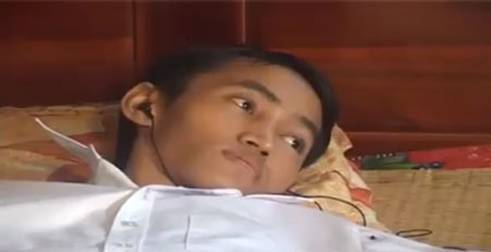 | Chàng thanh niên Nguyễn Bá Kỳ đầy nghị lực dù bị liệt toàn thân - (Ảnh cắt từ clip) |