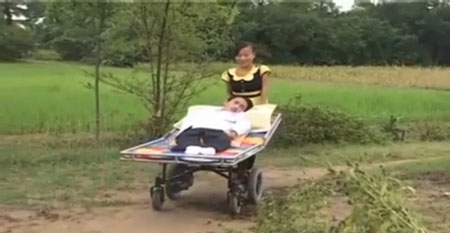 | Cô sinh viên tên Nga quyết tâm vượt qua mọi sự ngăn cấm để đến với chàng trai tật nguyền - (Ảnh cắt từ clip) |