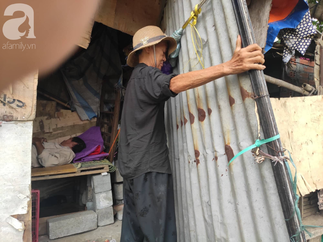 Khi chúng tôi đến, anh Bình, con trai của bà Ba chạy ra bên ngoài ngó nghiêng, chẳng nói năng câu gì rồi lại chui vào bên trong căn nhà chưa đầy 3m2.